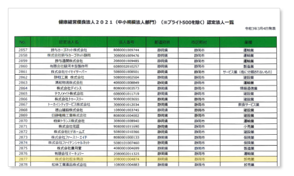 「健康経営優良法人(中小企業部門)」に認定されました。
